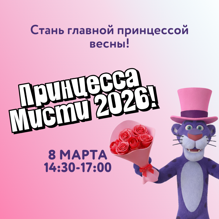 Приготовьтесь к самому захватывающему и увлекательному событию года — "Принцесса Мисти"! В программе — четыре увлекательные станции с челленджами, играми и эстафетами, где каждый сможет проявить себя и получить незабываемые эмоции! А в конце — шоу-программа, полная сюрпризов и магии!