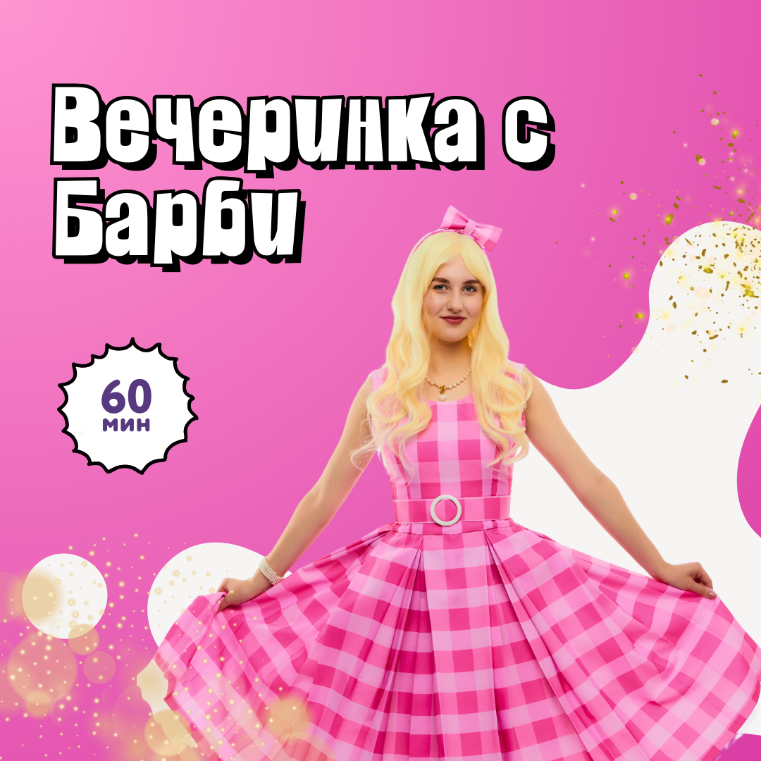 Для гостей подготовили супер программу с авторским сценарием и хореографией: дефиле по подиуму, “маникюр для Барби”, знакомство с косметичкой, эстафеты, танцевальные батлы и множество других сюрпризов! А еще повеселимся на “пляже” с розовым мячом и мыльными пузырями.